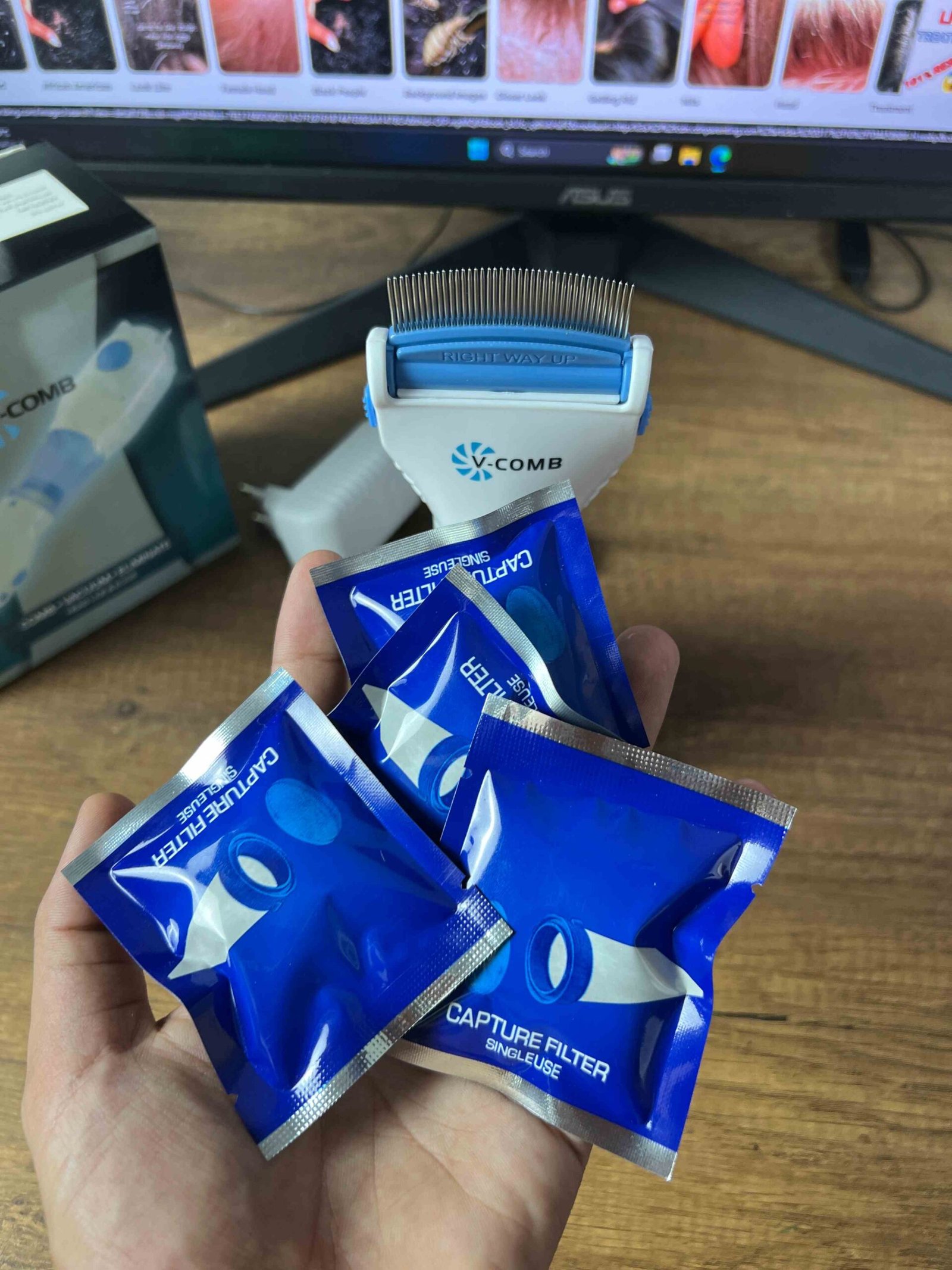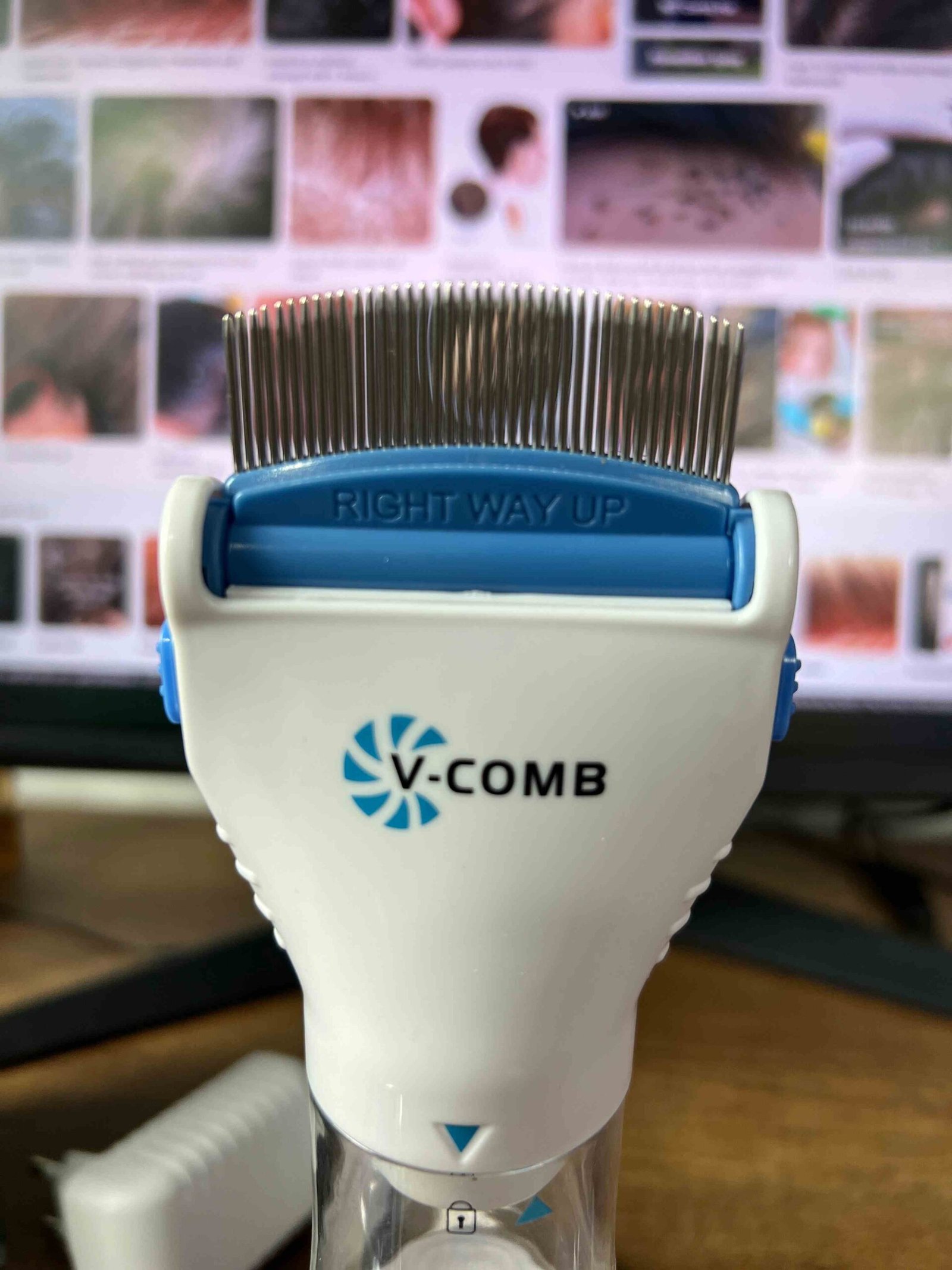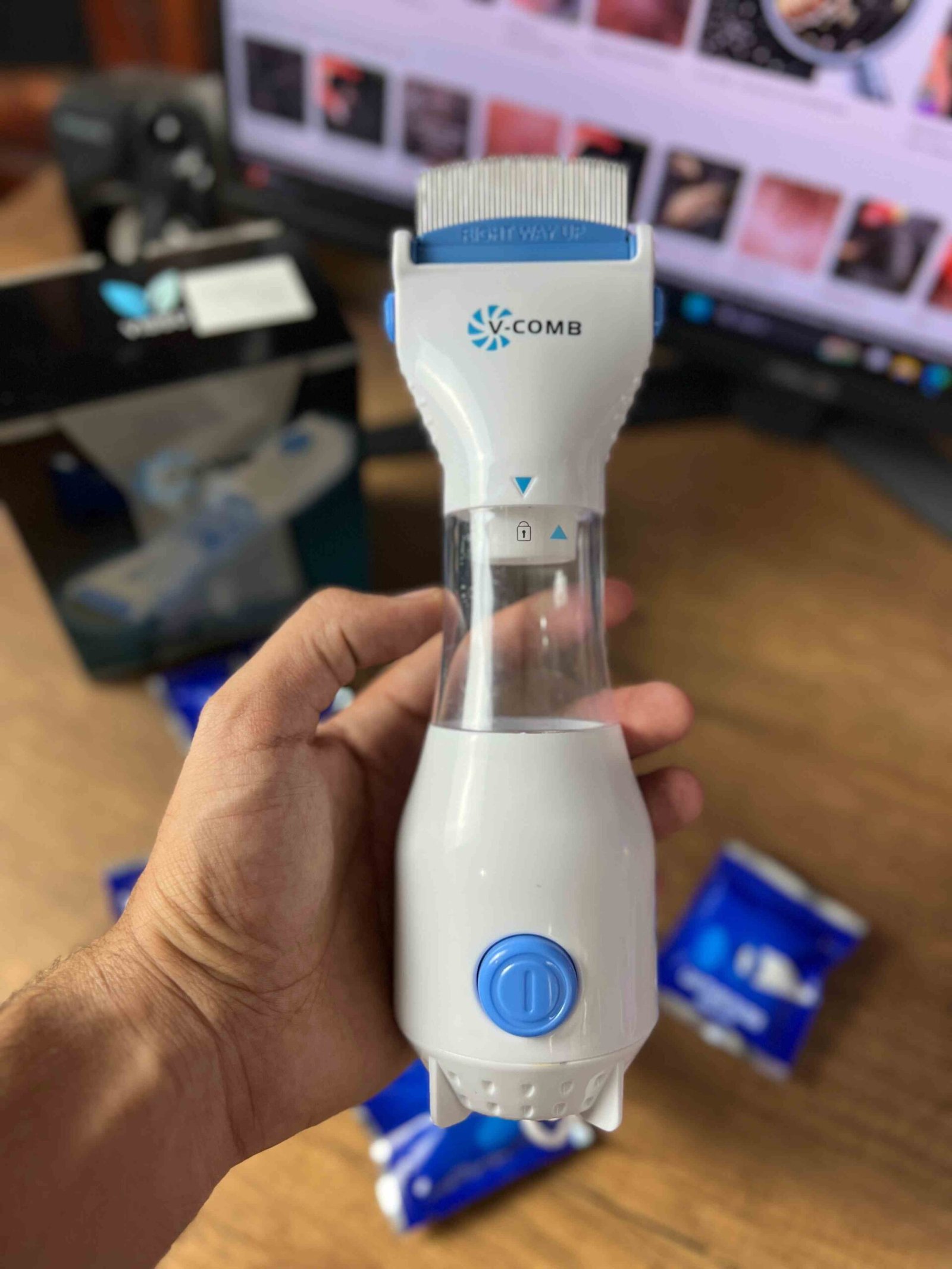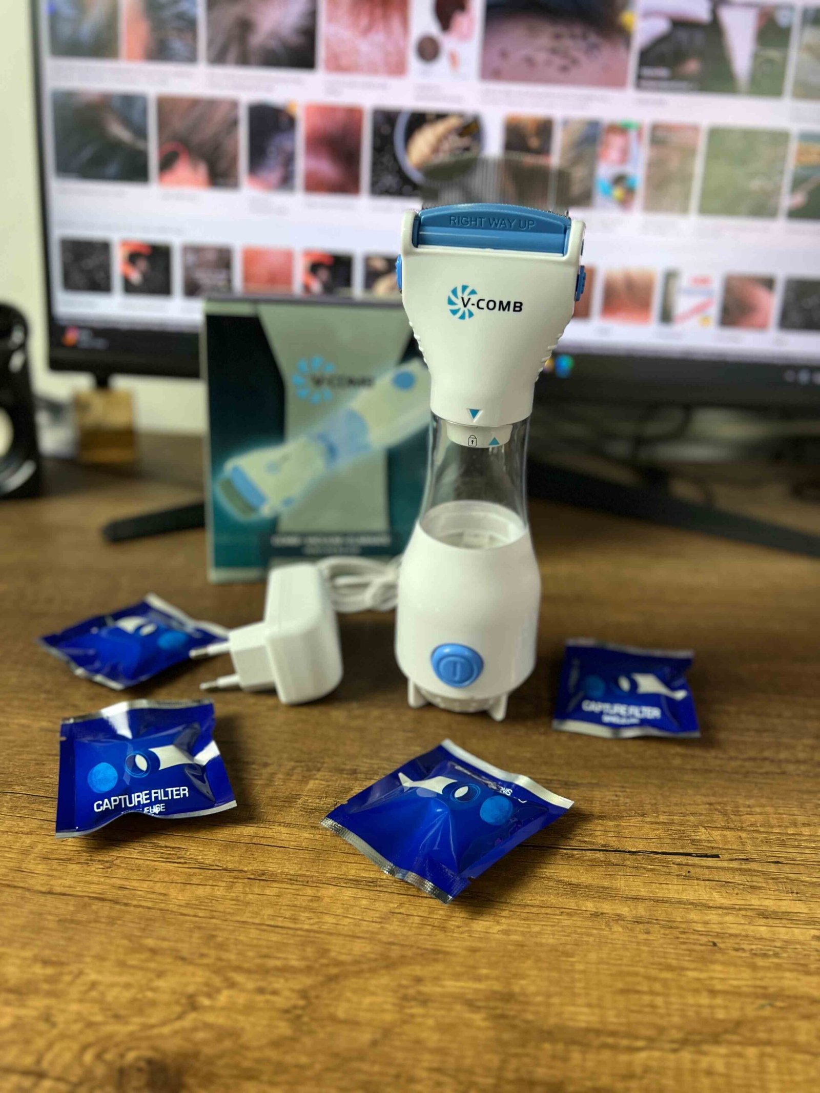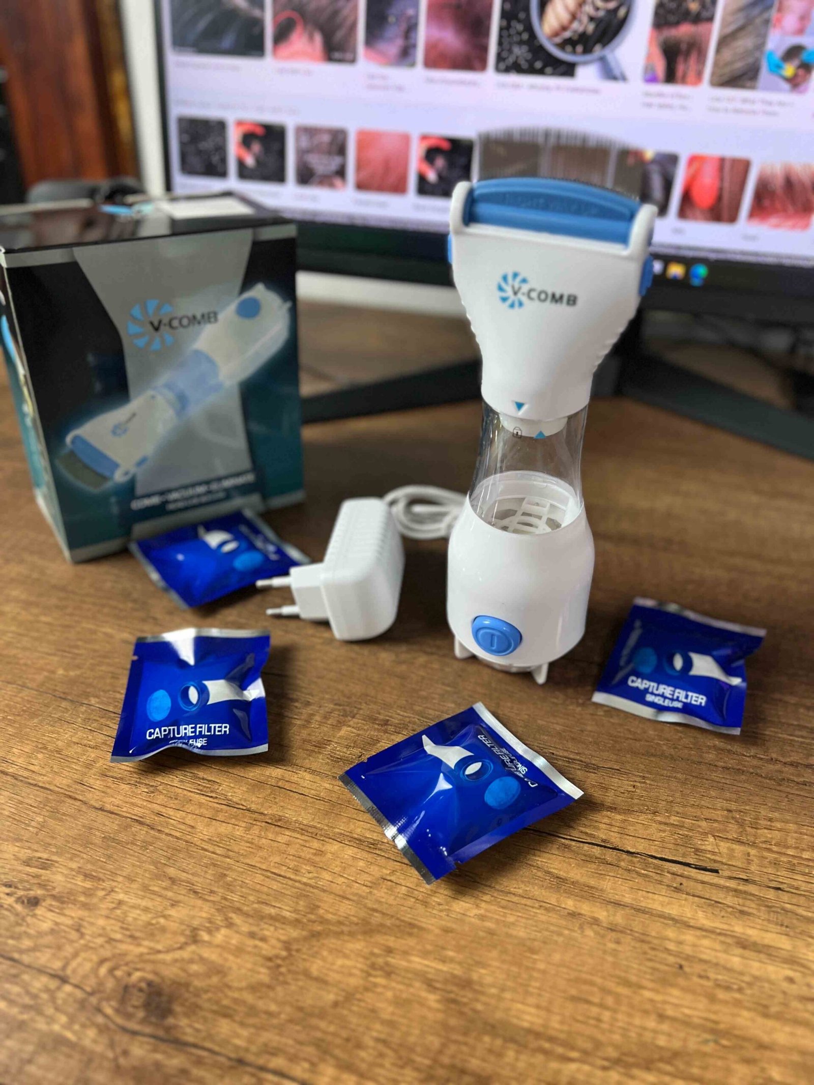 💡 الحل موجود وبدون مواد كيميائية وبدون حساسية 👌👇 🌀 V-COMB جهاز ذكي ينزع القمل والصيبان بكل سهولة، غير تمشطي بيه شعر ولدك والماكينة تسحبهم مباشرة لداخل الحاوية ✅.